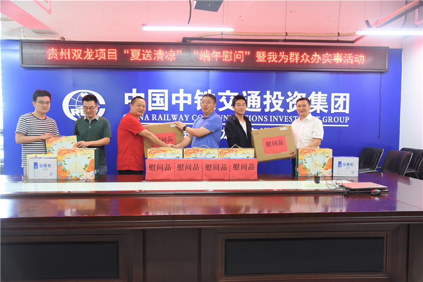 6月8日,貴州雙龍項目組織開展了“夏送清涼•端午慰問”暨“我為群眾辦實事”主題活動。集團公司副總經(jīng)理劉進友為貴州雙龍項目職工送上了慰問品,并要求項目公司積極落實好防暑降溫各項舉措,確保基層一線職工在安全生產(chǎn)作業(yè)時,防止高溫中暑。
