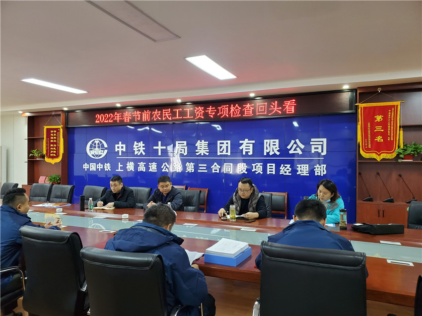 上橫指揮部對各合同段施工現場開展節前安全大檢查,并進行農民工工資支付專項檢查,督導施工單位做好春節期間疫情防控和安全施工建設,并及時足額發放農民工工資,維護農民工合法權益,確保春節期間企業安全和諧穩定。