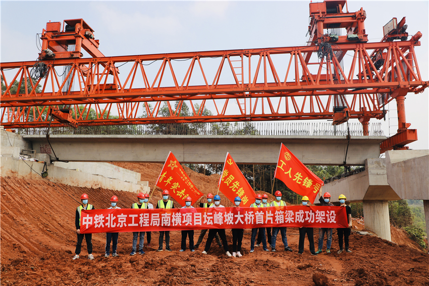據悉,壇峰坡大橋位于南寧市邕寧區中和鎮那才村附近,長147米,寬42米,共需架梁84片箱梁。南橫項目將對剩余施工生產任務進行優化分解,統籌資源配置,做好制、架梁生產計劃安排,對現場作業人員進行安全教育培訓和技術交底,嚴格把控好各道施工工序,確保壇峰坡大橋箱梁架設如期完成。