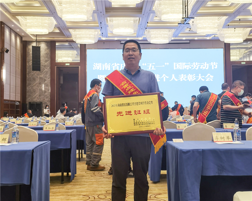 4月29日上午9時,湖南省慶祝“五一”國際勞動節暨先進集體先進個人表彰大會在長沙召開。爐慈桑龍項目共摘得5項“助力十四五 建設新高地”湖南省百萬職工重點建設項目勞動競賽榮譽:爐慈指揮部、桑龍TJ5標項目部榮獲先進班組稱號,項目公司陶新華、劉芳和爐慈TJ1標項目部董李軍榮獲先進個人稱號。